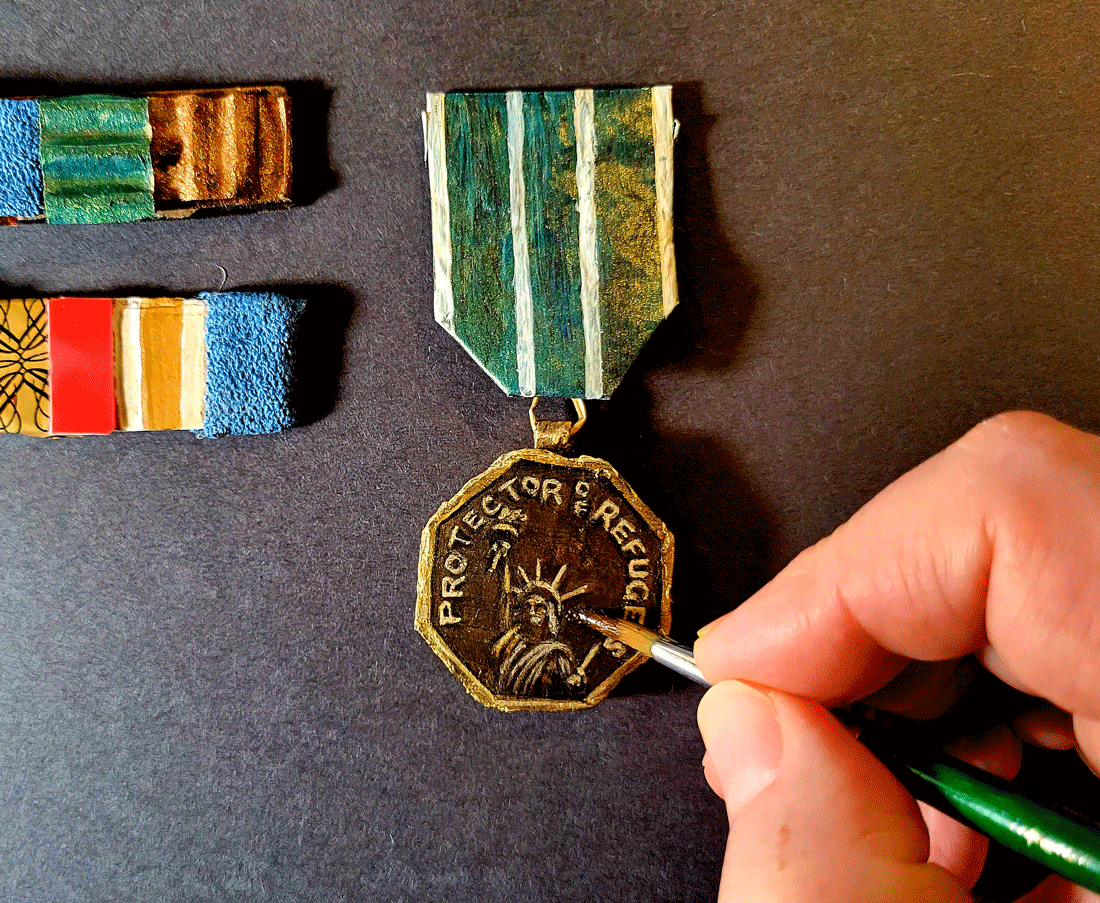 "As art historical metaphor, the bird has been used to represent socio-spiritual themes of regeneration and transcendence. In Shotola-Hardt’s work, this symbolism comes full circle: the bird becomes a feathered humanoid in the narrative and social seat of history painting. The intimate detail and ornate layering of the bird-figure collapses linear history and replaces it instead with the impossible dynamism and forgiveness of flight: it’s as if a Grant Wood landscape crept into the Gothic urbanism of a Dürer print. 'Portrait of Francois I on Horseback (After Francois Clouet),' for example, pays both titular and visual homage to art historical matter as framed by contemporary allegory. There is something comforting and familial in these works, but a foreboding joust with antiquation looms in the knowing eyes of anthropomorphized subjects. Jumping from canvas to canvas, it seems Shotola-Hardt’s subjects are navigably asserting their lineage and identity. Making use of myriad styles, Shotola-Hardt references and re-envisions craft, folk art, Enlightenment still-life, cubism, and cave painting in this exhibition, and the works, in turn, are grounded by a flocking palette of muted gray and a tactile robin’s egg blue ... Shotola-Hardt’s work disrupts the flow of time."